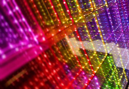 Macro of silicon wafer semiconductor with neon color-integrated circuits to manufacture CPU and GPU
