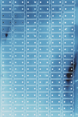 Slanted view on a blue grid over a hole that can be used as background or wallpaper