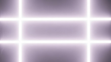 Abstract pattern with neon lights forming illuminated grid glowing beams lines minimal background geometric design