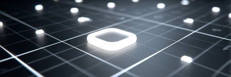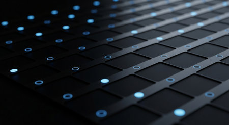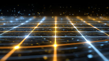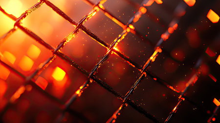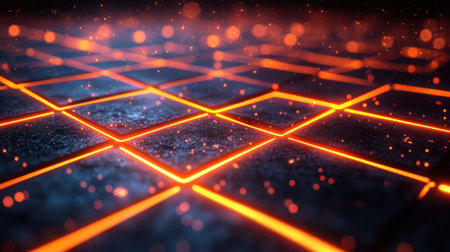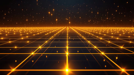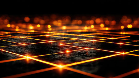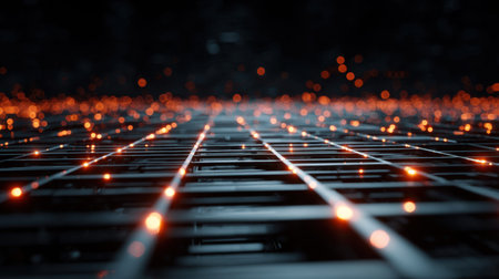 This stunning image features a glowing grid pattern with warm orange lights against a dark background, creating a captivating abstract design perfect for technology themes.