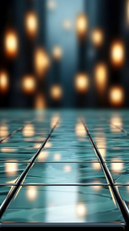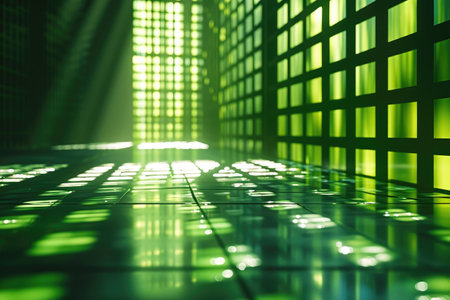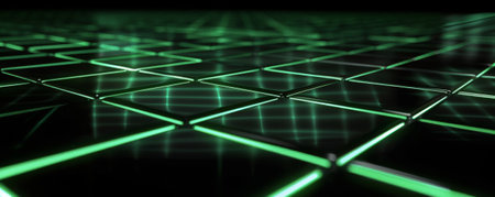 Vibrant green glowing tiles create a modern and stylish floor in this abstract image. The glossy reflections enhance the contemporary ambiance, perfect for design inspiration.