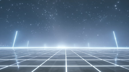 A captivating digital landscape featuring a glowing grid against a starry background, creating a sense of depth and technological wonder in abstract form.