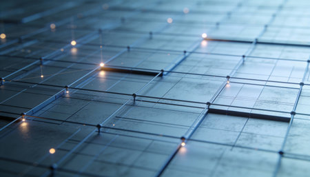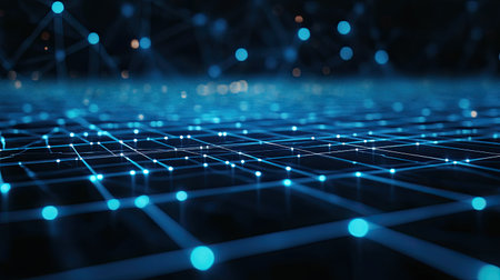 Abstract digital network grid glowing with light, representing technological processes.