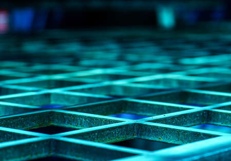 Slanted view on a blue grid over a hole that can be used as background or wallpaper