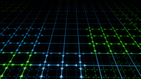 Glowing light lines on a dark digital grid
