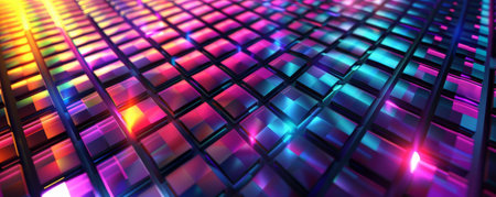 Illuminated colorful LED lights on a grid, creating a vibrant and futuristic atmosphere. Disco dance floor