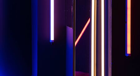 Colorful fluorescent lamps on the ceiling in a night club. Lighting equipment.