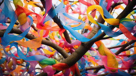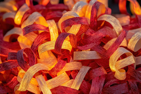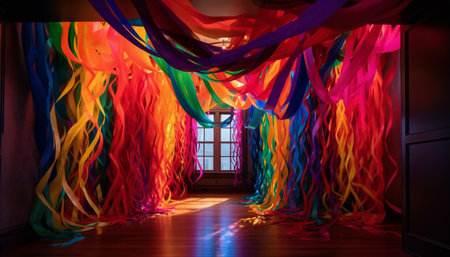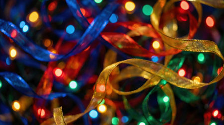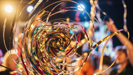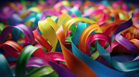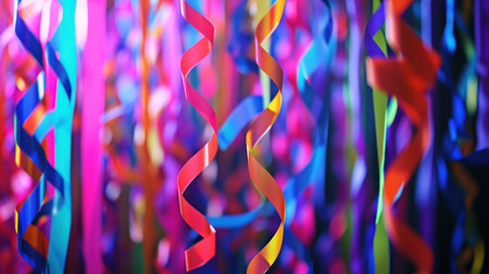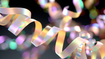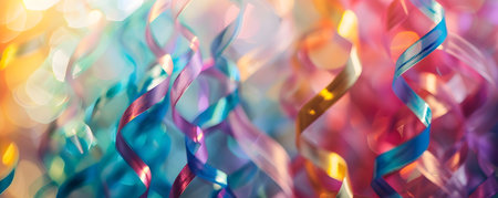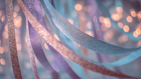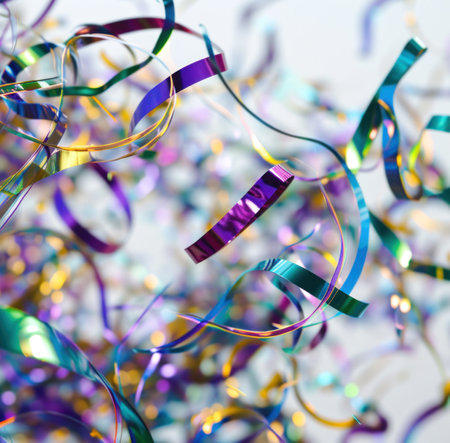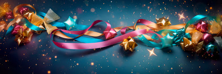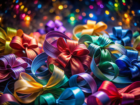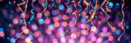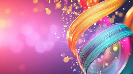 Explore a vibrant and colorful scene filled with shimmering ribbons and sparkling confetti, perfect for creating a festive atmosphere for any celebration.