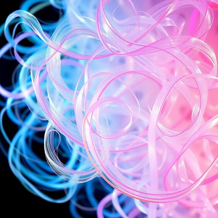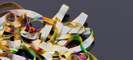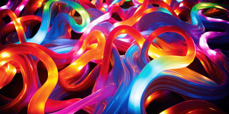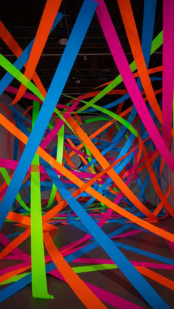 Vibrant texture of flexible wired ribbons intertwining in a lively display of color