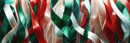 Red, green and white ribbons as a background. 3D rendering