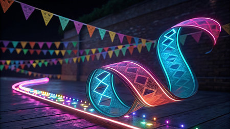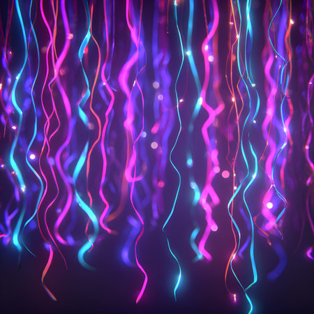 Colorful glowing ribbon against a backdrop of vibrant bokeh lights creating a lively festive atmosphere