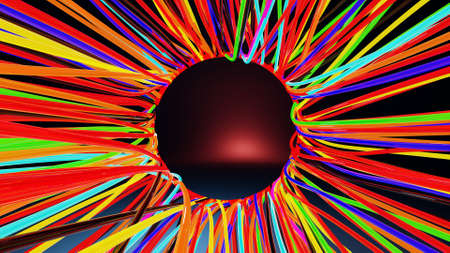 Neural fibers, 3D rendering, multicolored glowing hair in space. Background, abstraction, large number of appendages, lgbt color.