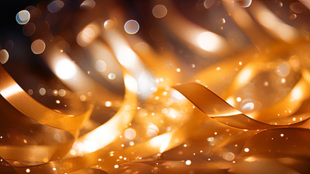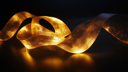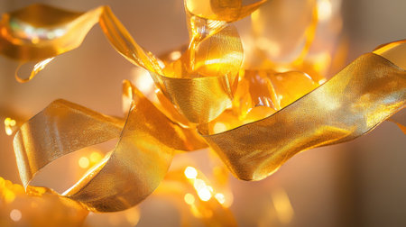 An artistic composition of flowing golden ribbons illuminated by soft light, creating a warm and dynamic atmosphere perfect for celebrations or elegant design projects.