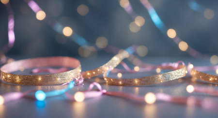 Colorful sparkling ribbon with vibrant bokeh background in soft light at a festive event