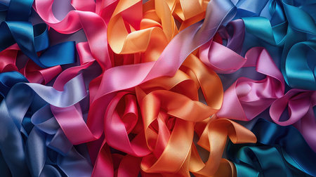 Colorful satin ribbons in vibrant shades of pink and blue