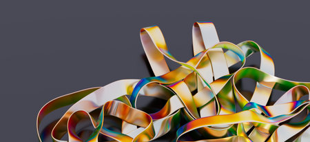 Abstract Colorful Iridescent Ribbons on Dark Background