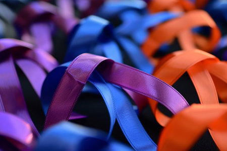 Close-up of various gift ribbons with a focus on texture and color variations, great for detail-oriented themes,