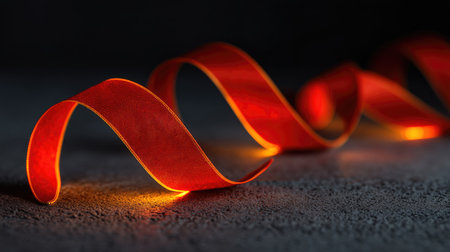 A vibrant red ribbon gracefully curves across a dark surface, showcasing its texture and warmth. Ideal for artistic or decorative themes, this image adds elegance.