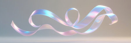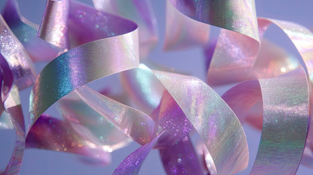 This image features vibrant iridescent ribbons gracefully twisting and flowing against a soft background, creating a festive and elegant atmosphere.