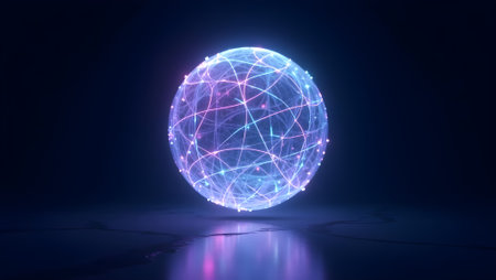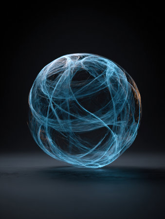 A luminous sphere hovers in a dark setting, displaying stunning blue lines intertwining and creating a captivating visual effect that draws attention.