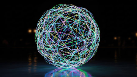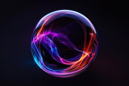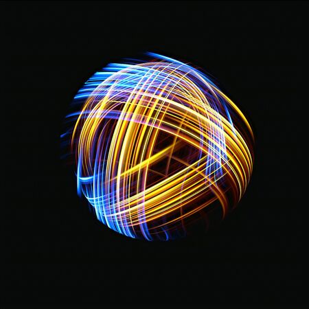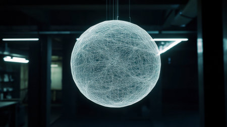 This stunning image features an ethereal sphere composed of intricate light lines, creating a mesmerizing digital art piece ideal for modern design themes.