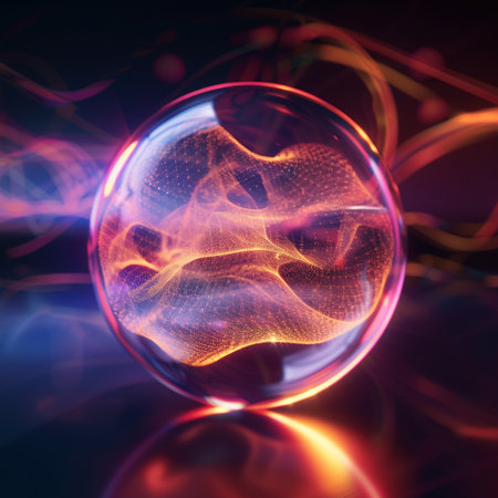 Glowing plasma ball emits colorful electric currents, creating a mesmerizing and surreal atmosphere