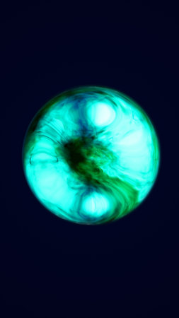 Abstract turquoise-blue energy orb swirling with fluid motion and light gradients in a dark background.