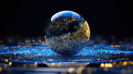 A mesmerizing crystal sphere filled with glimmering stars on a blue backdrop, creating a magical and dreamlike atmosphere ideal for art projects and designs.