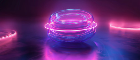 Neon light in the round room, 3d rendering. Computer digital drawing.