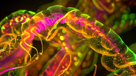 a microscopic view of a vibrant cellular world with DNA strands intertwining