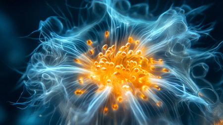 AI generated closeup macro shot of a luminous virtual generic virus detail