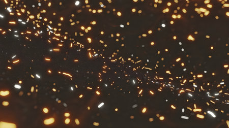 Vibrant showing a vibrant explosion of golden and silver confetti and glitter bursts outwards from a central point creating a energetic, and celebratory abstract...