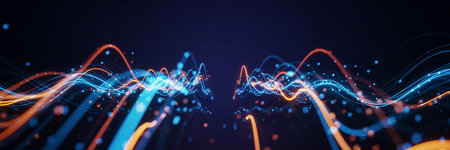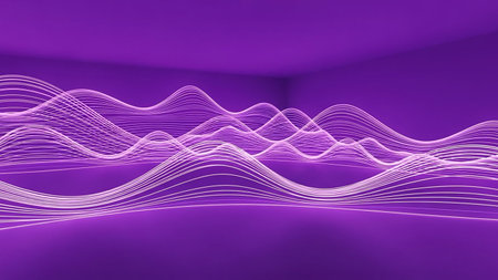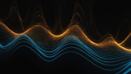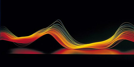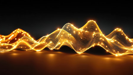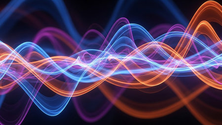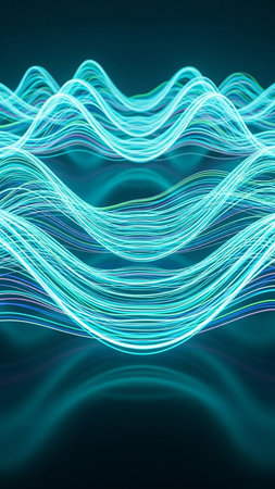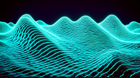 Sound waves oscillating with the glow of light, abstract technology.