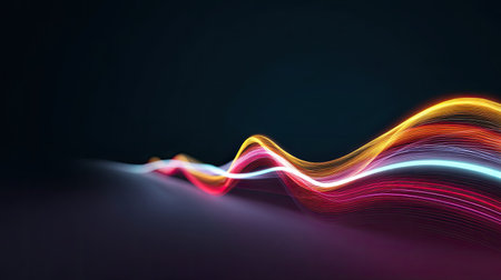 Stunning image of colorful light waves gracefully flowing against a dark backdrop, perfect for modern art projects and creative digital design themes.
