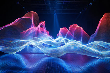 A dynamic visual representation of sound waves in vibrant neon colors, showcasing intricate patterns and pulsating energy. This abstract digital art evokes the essence of audio and technology.