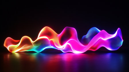 Bright and colorful light waves flow smoothly across a dark background, forming captivating patterns. The vibrant colors dance dynamically, creating an artistic effect.