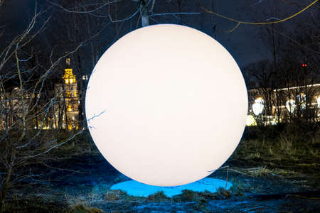light magical sphere in human hand in the night