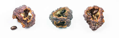 Custard custard apple with cracks and bites until the ball rot on a white background