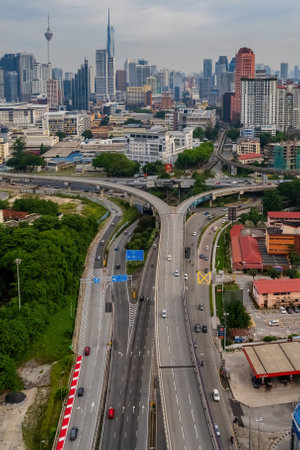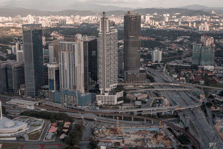 Kuala Lumpur, Malaysia - March 16, 2019: panoramic view of a modern skyscrapers and developed transport infrastructure in Kuala Lumpur, Malaysia