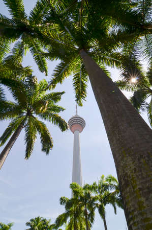 City, Kuala Lumpur/Malaysia - Mar 27 2014: Green scenery of KL Tower with palm tree in sun light morning.