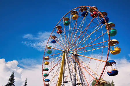 Ferris wheel against a blue sky. Ukraine, Kiev.