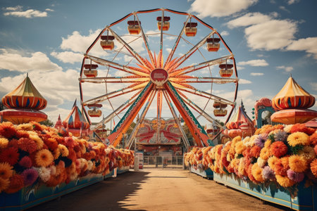 Carnival ride packed with vibrant balloons, creating a lively and festive atmosphere, A cheerful carnival filled with colorful balloons and whimsical rides