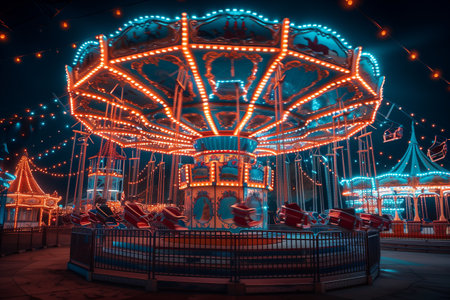 Vivid carousel in motion creates a playful blur of colors at night carnival