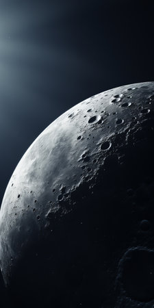 Realistic depiction of the Moon, Earth's natural satellite, showing its surface and craters from a detailed perspective Generative AI