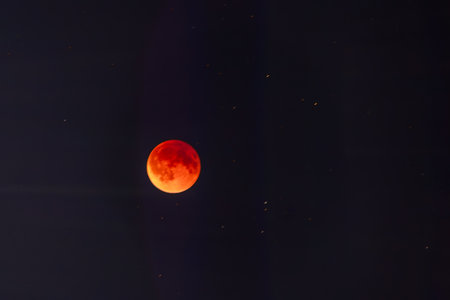 A blood moon against a dark night sky, showcasing a lunar eclipse.