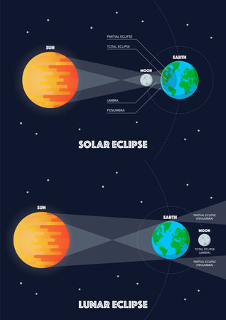 Solar eclipse and Lunar eclipse infographic. Flat style vector illustration