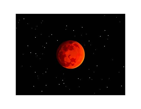 Blood red moon in night sky. Celestial prophecy. Lunar eclipse in dramatic red color with a cosmic sparkle. A symbol of transformation.