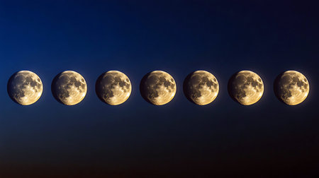 A series of moon phases is displayed against a dark sky, illustrating the transition from new moon to full moon. This celestial event highlights the natural beauty of nighttime.