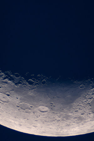 High-resolution shot reveals crater floor near lunar terminator. Moon’s terminator line, showcasing sharply defined craters, rugged mountain ranges and smooth lunar maria under low-angle sunlight.
