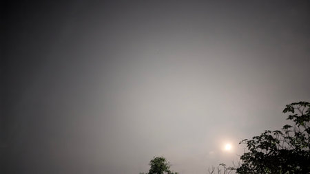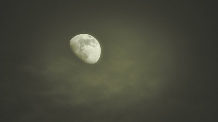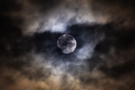Dark cloudy sky covering the bright moon
